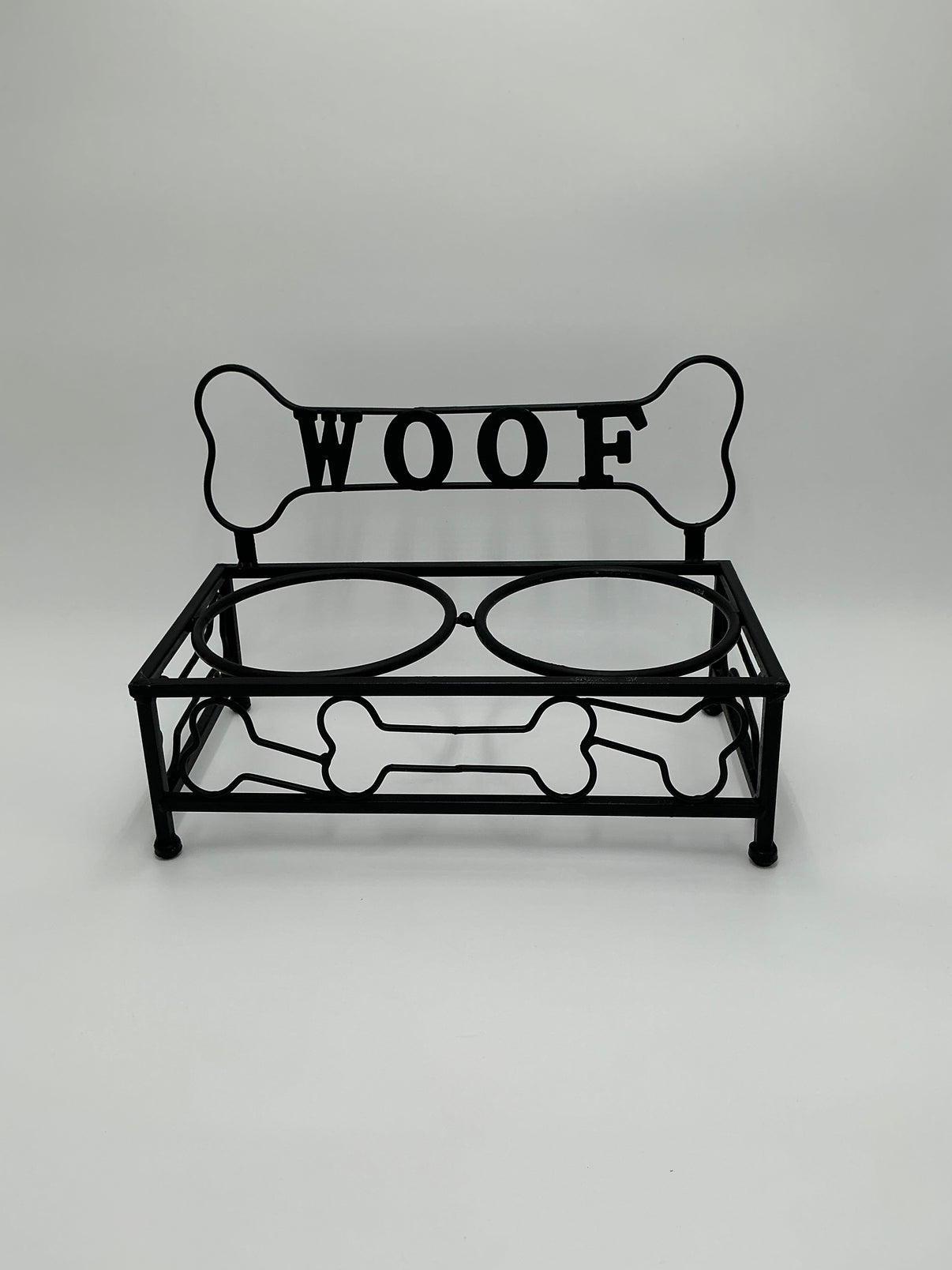 Elevated Metal Pet Feeder Stand – “WOOF” Design (Bowls Not Included)
