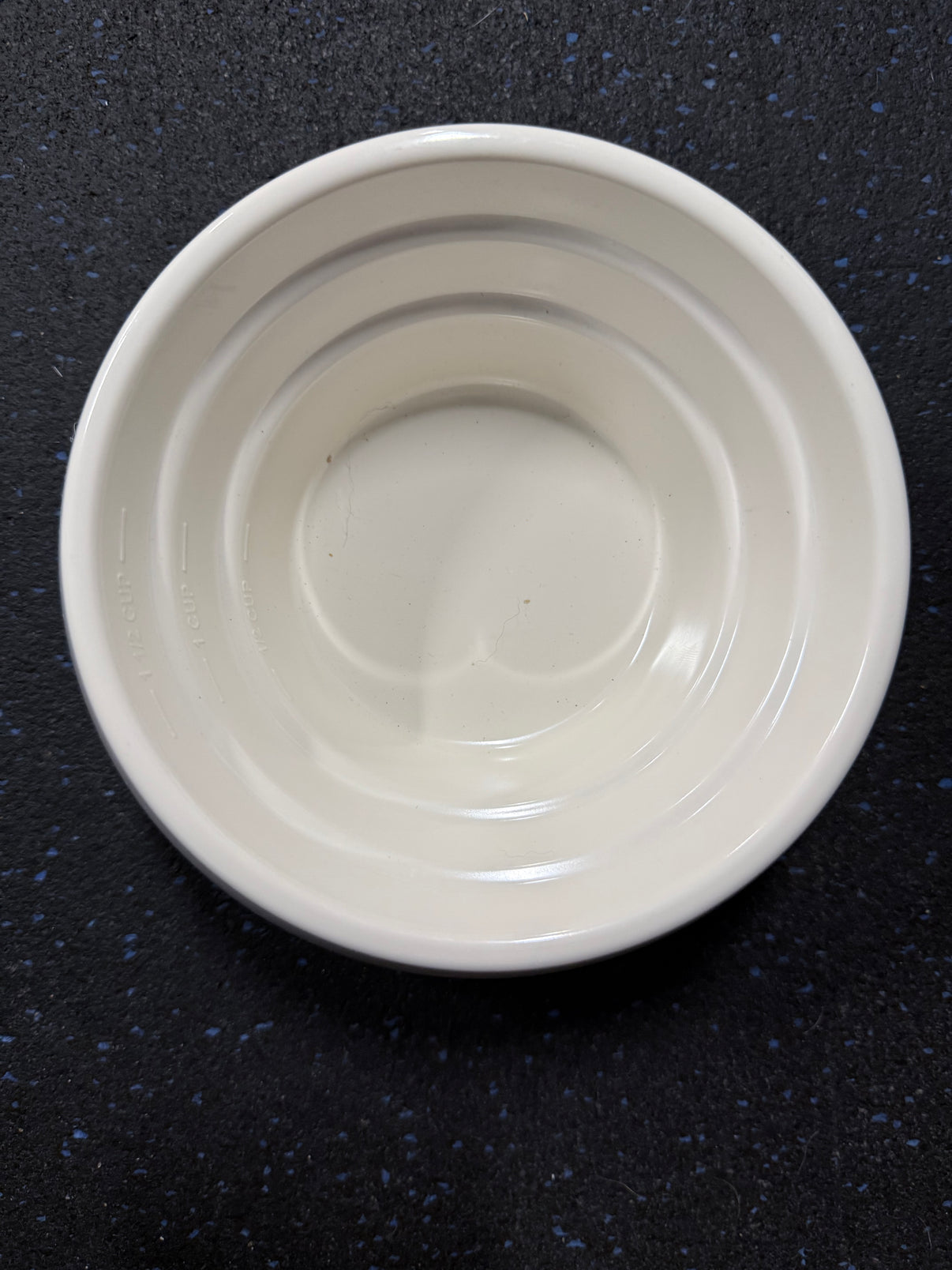 This item is Pre Owned Contoured hand-grip makes the bowl easy to pick up and put down with fewer spills Size: 12.34 Fl Oz / 365 mL Material: Melamine and silicone...