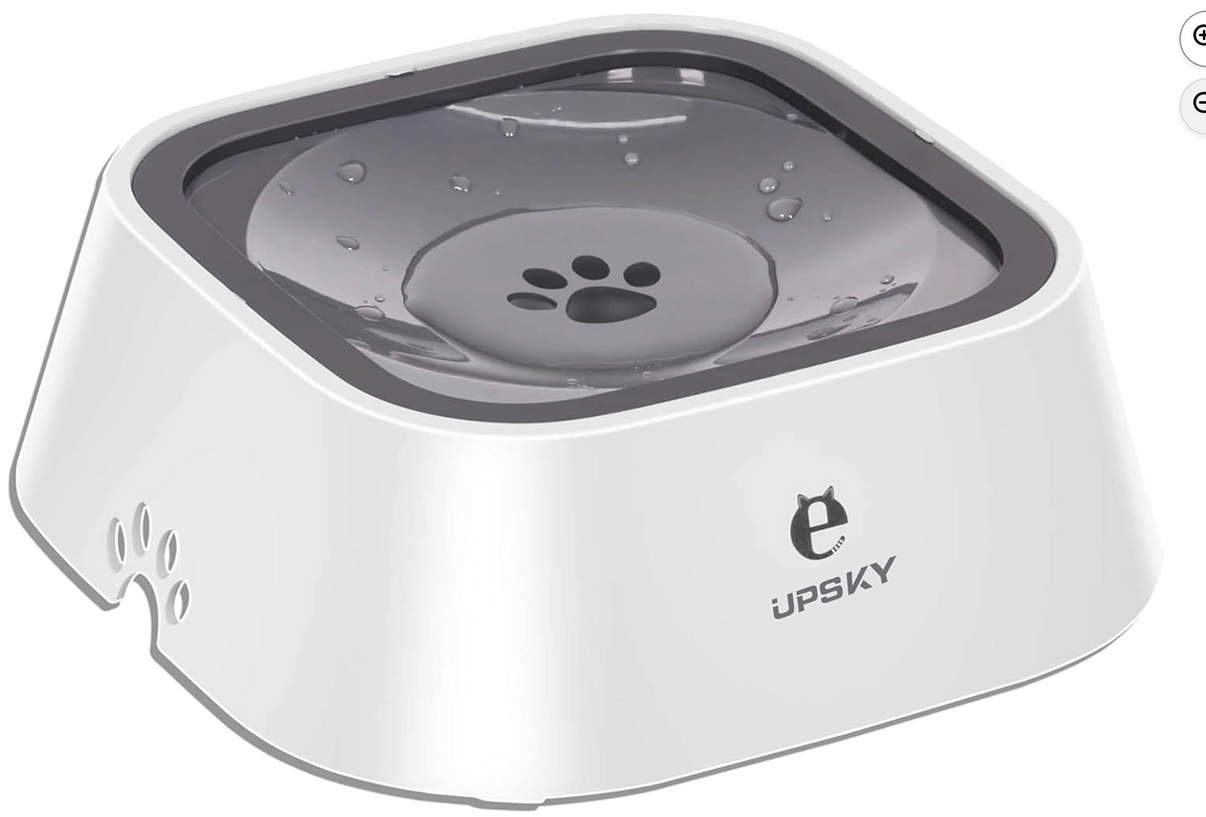 UPSKY No-Spill Pet Water Bowl- 35oz Gray and White