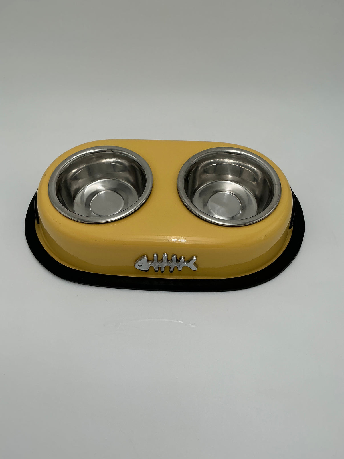 • Whimsical Design: The sturdy yellow base is accented with a cute fish skeleton emblem, adding a playful, retro touch to your pet supplies.