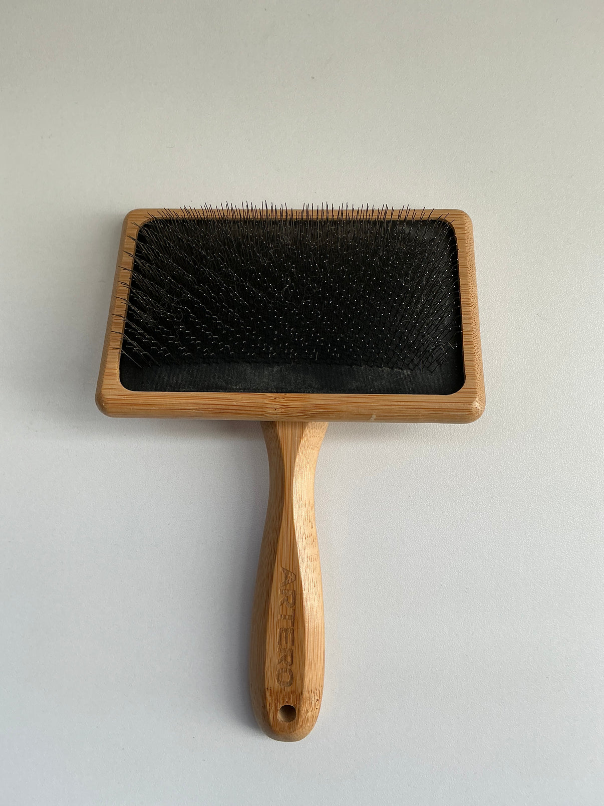 Part of Artero’s eco-friendly Nature Collection, this slicker brush features a lightweight wooden handle crafted for comfort and control, reducing hand fatigue during longer grooming sessions. Perfect for professional groomers and at-home pet parents alike.