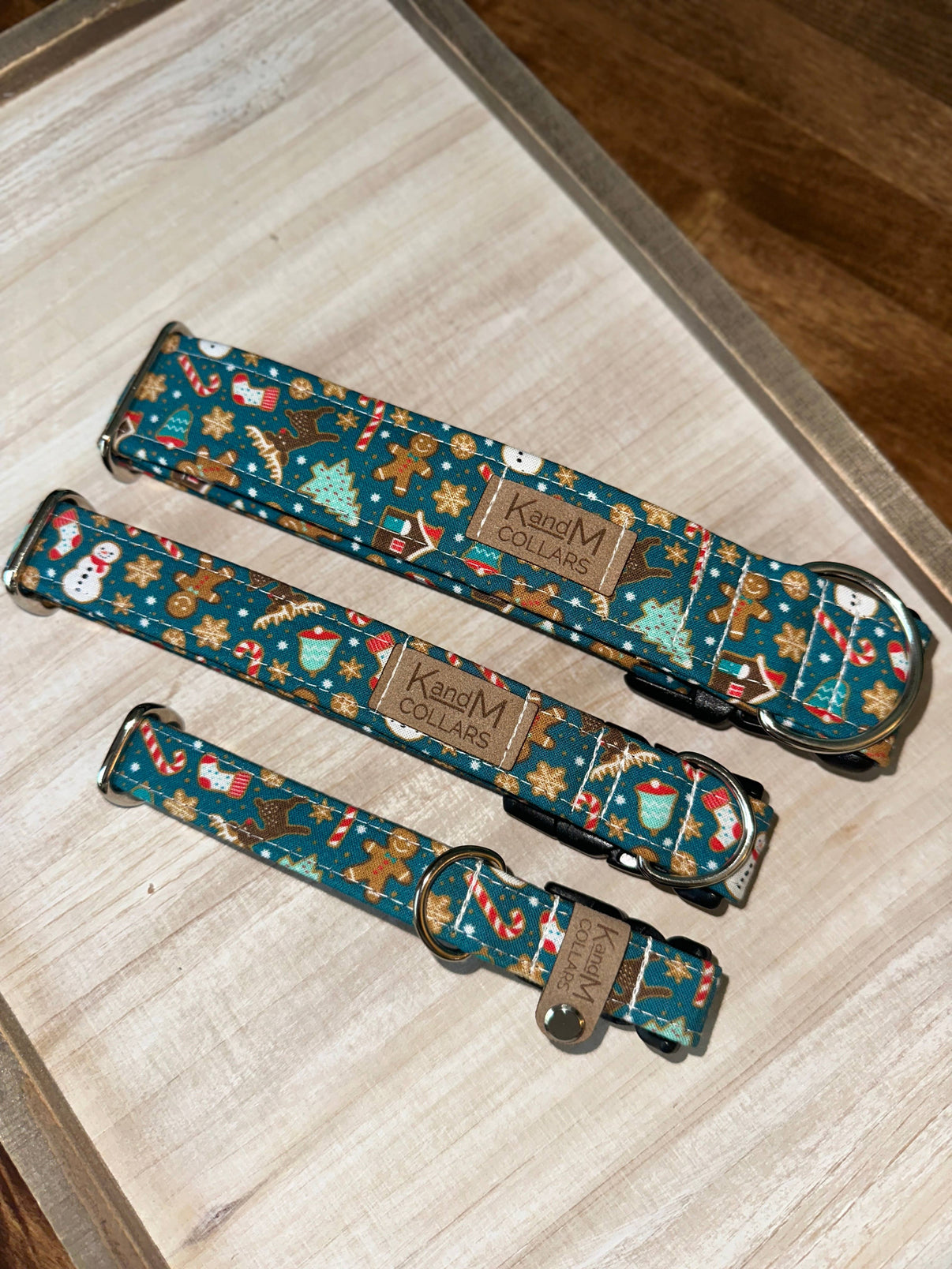 Gingerbread on Dark Teal Dog Collar, K and M Collars