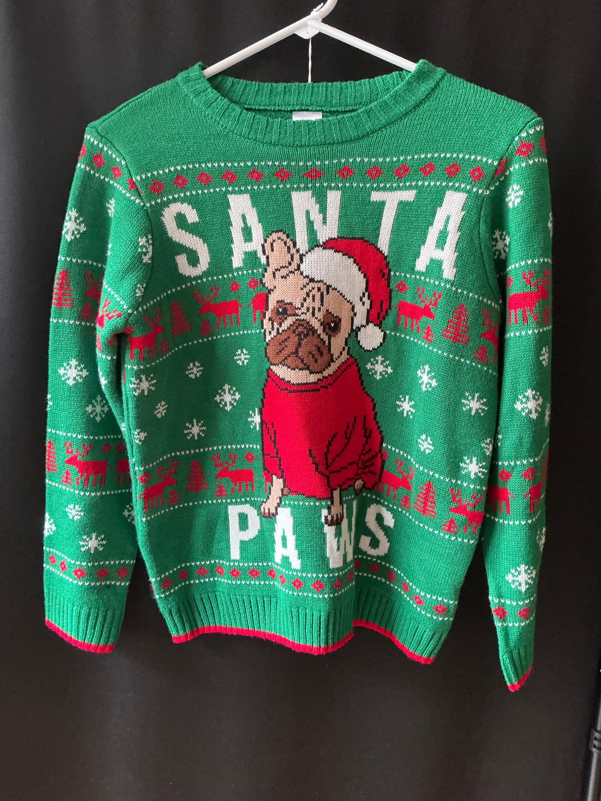 Bring festive cheer to the holidays with this Holiday Time knit Christmas sweater! Featuring an adorable French Bulldog wearing a Santa hat and playful “Santa Paws” design, it’s perfect for...