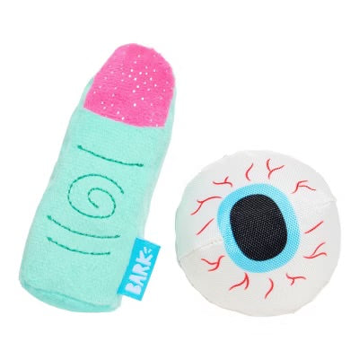 Don't leave the party without this group of ghoulish goOOOdies! This pack of menacing morsels puts the “part” in party favors. This four-part party favor dog toy assortment features four squeakers and crazy crinkle, making every bite extra bone-chilling. After fetching, shredding and squeaking Body Part-y Favors, your pup will wish every goodie bag was this gruesome!