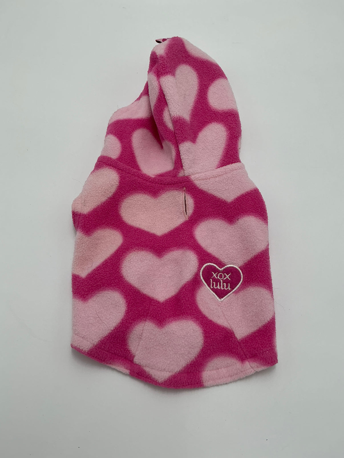 LULUPINK Pet Hoodie – Size Extra Small- Hot pink with Light Pink Hearts