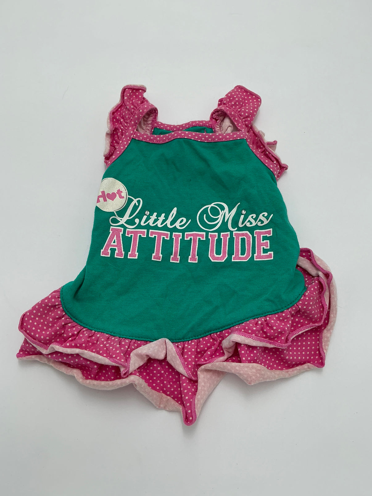 Simply Dog “Little Miss Attitude” Pet Dress – Size Extra Small- Teal and Pink