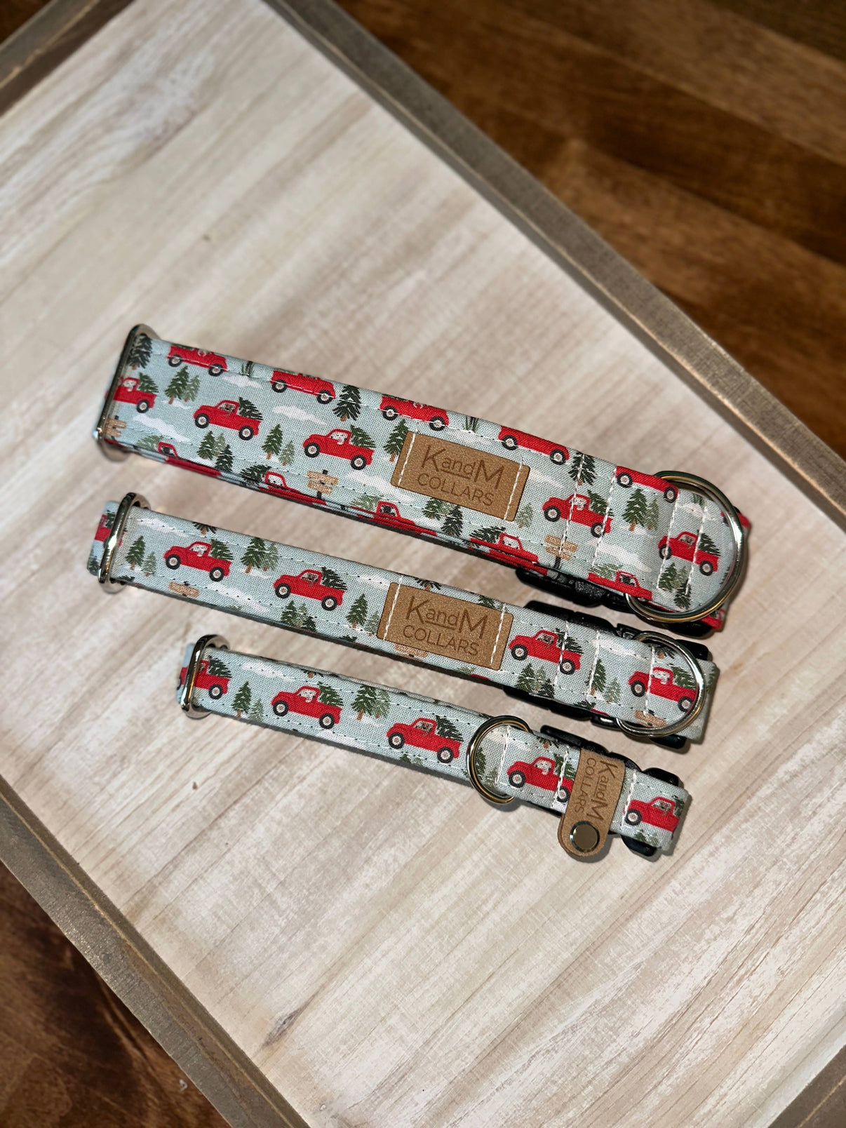 Christmas Tree Trucks Dog Collar, K and M Collars, Winter
