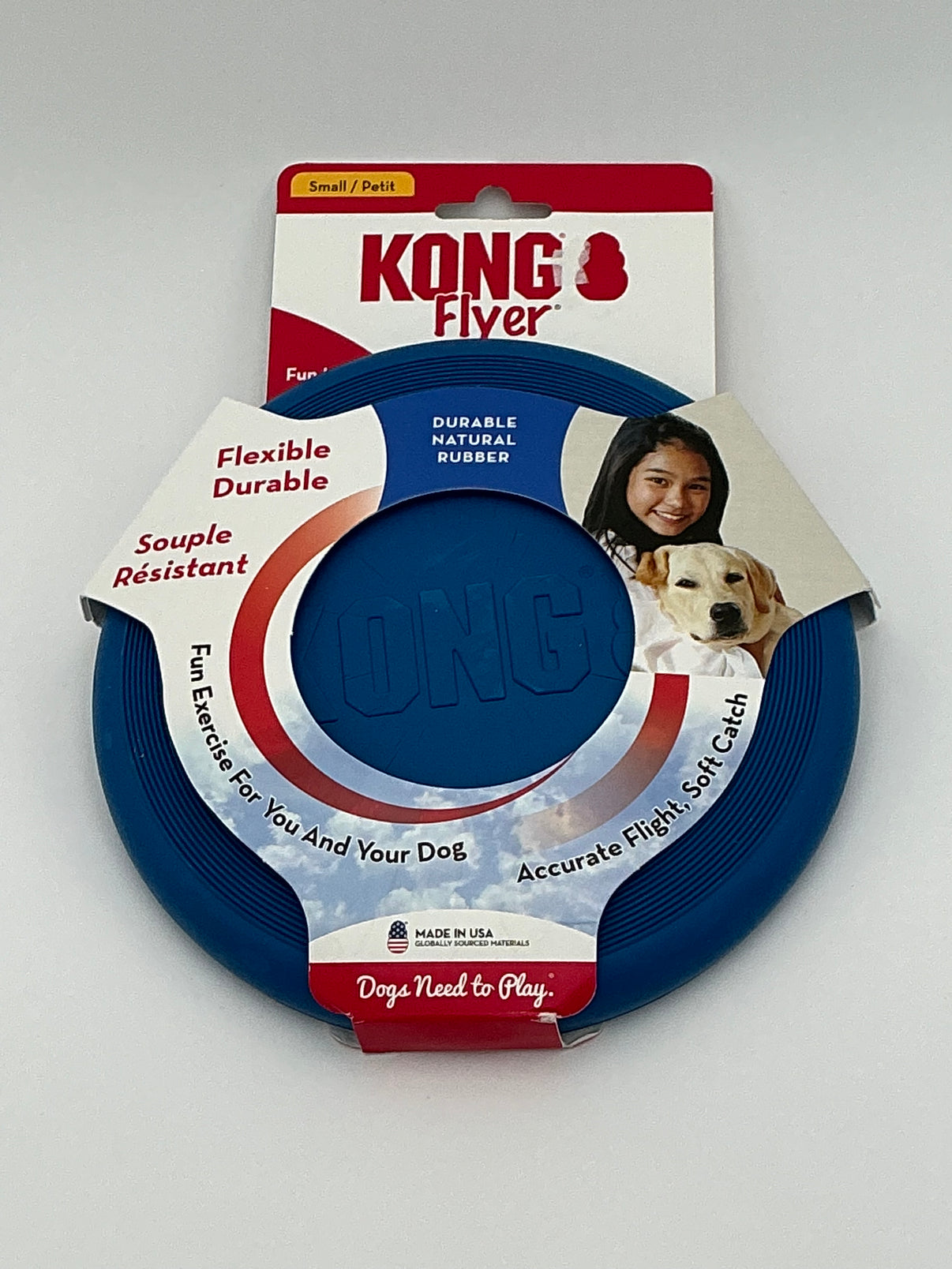 Give your pup hours of fun with the KONG Flyer Small, the perfect flying disc made just for dogs who love to fetch! Crafted from KONG’s signature natural, durable rubber, this flyer is soft on your dog’s teeth and gums while still providing the bounce and toughness KONG toys are known for.