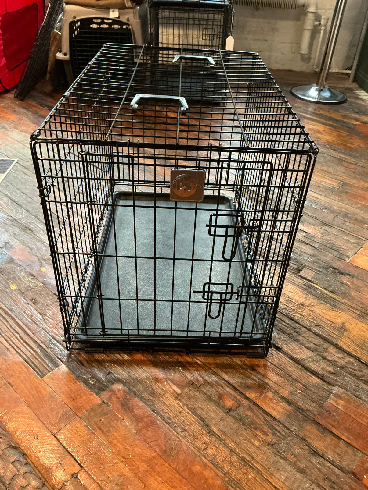 Give your pet a safe and comfortable space with this preowned wire kennel — perfect for small to medium-sized dogs or other small animals. Made from sturdy metal wire, it provides secure containment while allowing full visibility and airflow. The front door offers easy access, and the durable latch keeps your pet safely inside.