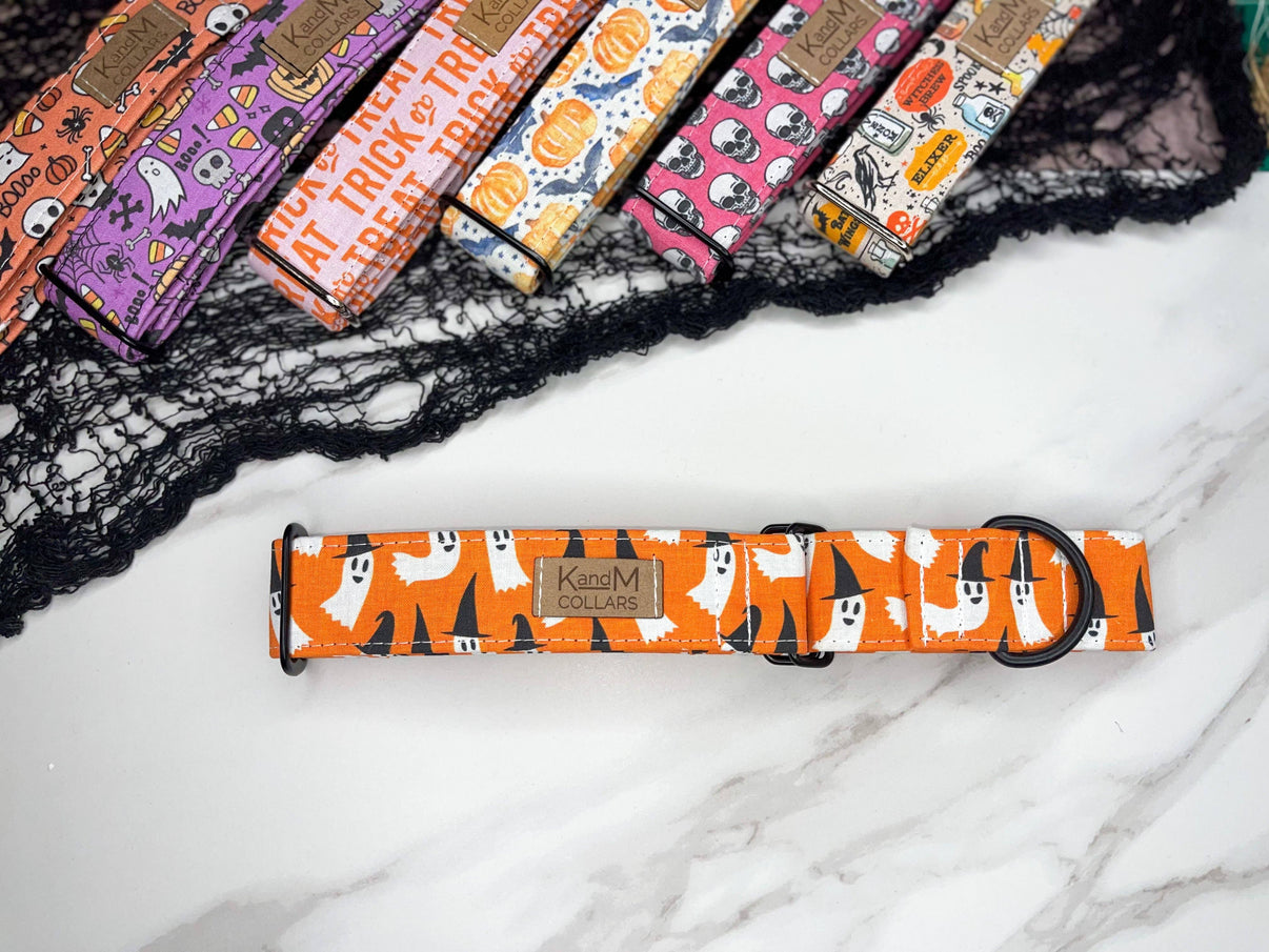 We offer 4 different collar options, 3 are buckles and the Fabric Martingale option which does NOT have a buckle on it.