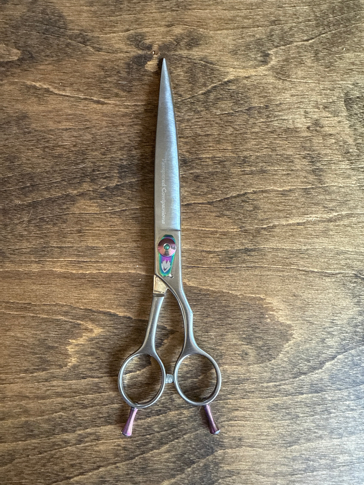This item is PRE-OWNED and in GOOD Condition. See Photos and description for conditioner. All scissors come with 10% off sharpening coupon at Sharper Edges. Precision Grooming with a Smooth, Curved Edge – Priced to Reflect Minor Imperfection