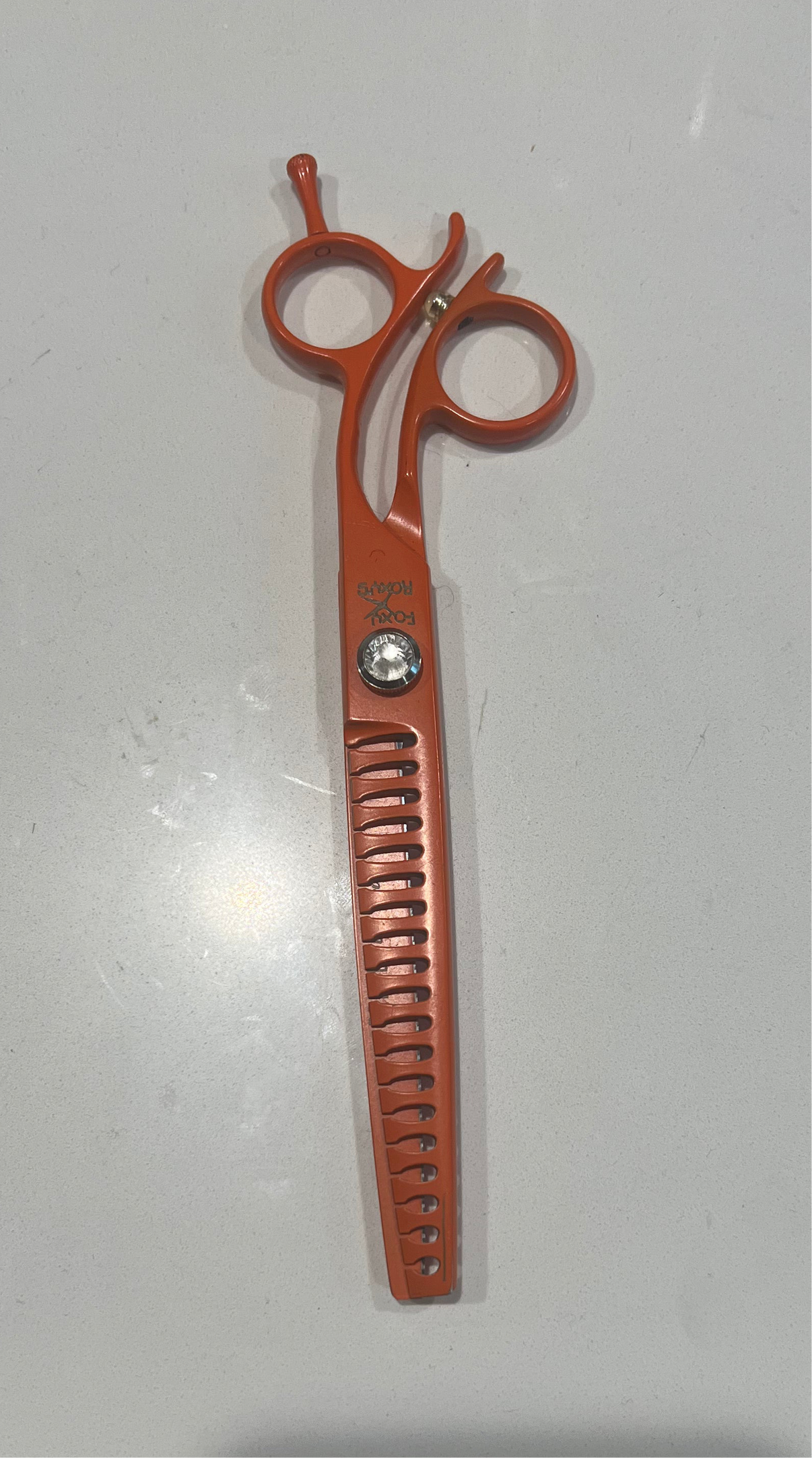 Achieve a clean, professional finish with the Foxy Roxy 7” Denzel Chunker Shears, perfect for all your dog grooming needs. These chunker shears are designed to thin, blend, and remove excess fur efficiently, making grooming easier and more precise.