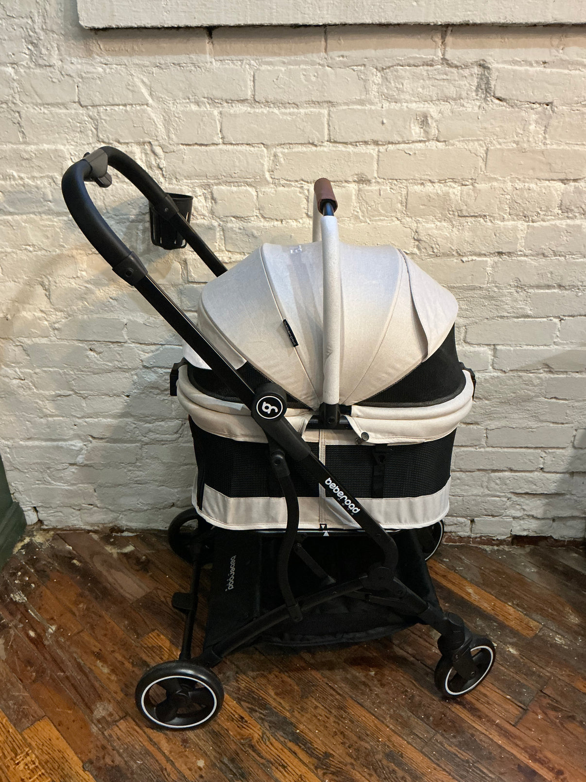 Travel in style with your furry friend in the Beberoad T3 Pet Stroller, featuring a sleek black and white design and premium lightweight aluminum frame. Perfect for cats, small dogs, and other small pets, this stroller combines fashion, function, and comfort for everyday adventures.