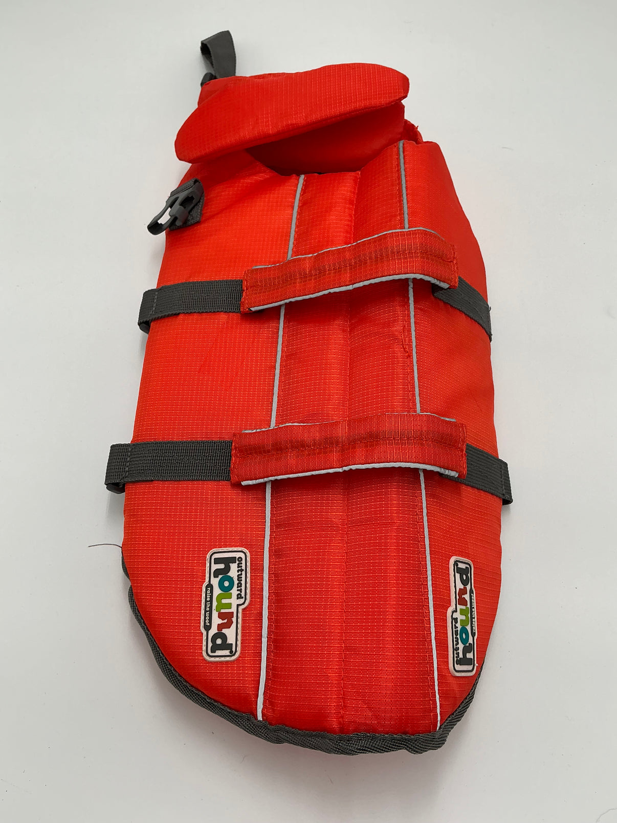 This is a pre-owned Outward Hound Pet Life Jacket in Size Medium, being offered in new (like-new) condition. Outward Hound is a popular brand known for its high-quality pet gear, especially for outdoor activities.
