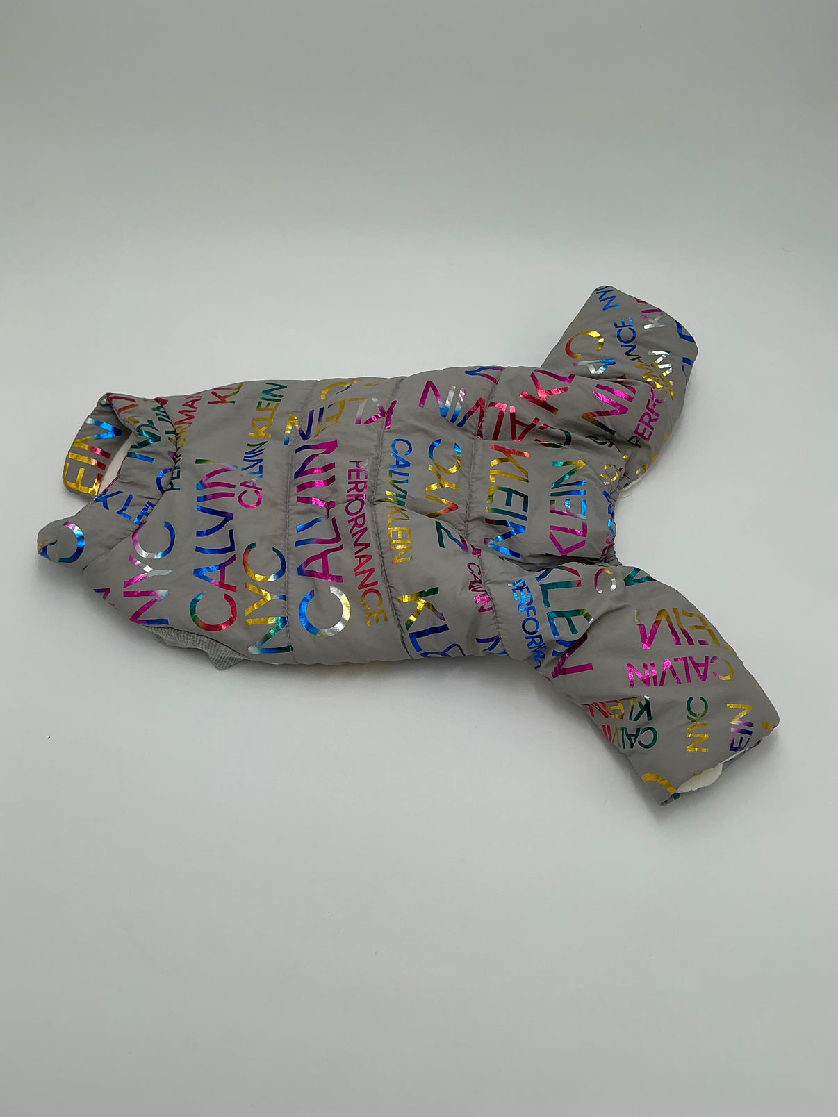 Calvin Klein Performance Multi-Color Logo Full Body Insulated Dog Puffer Coat- XL- Grey