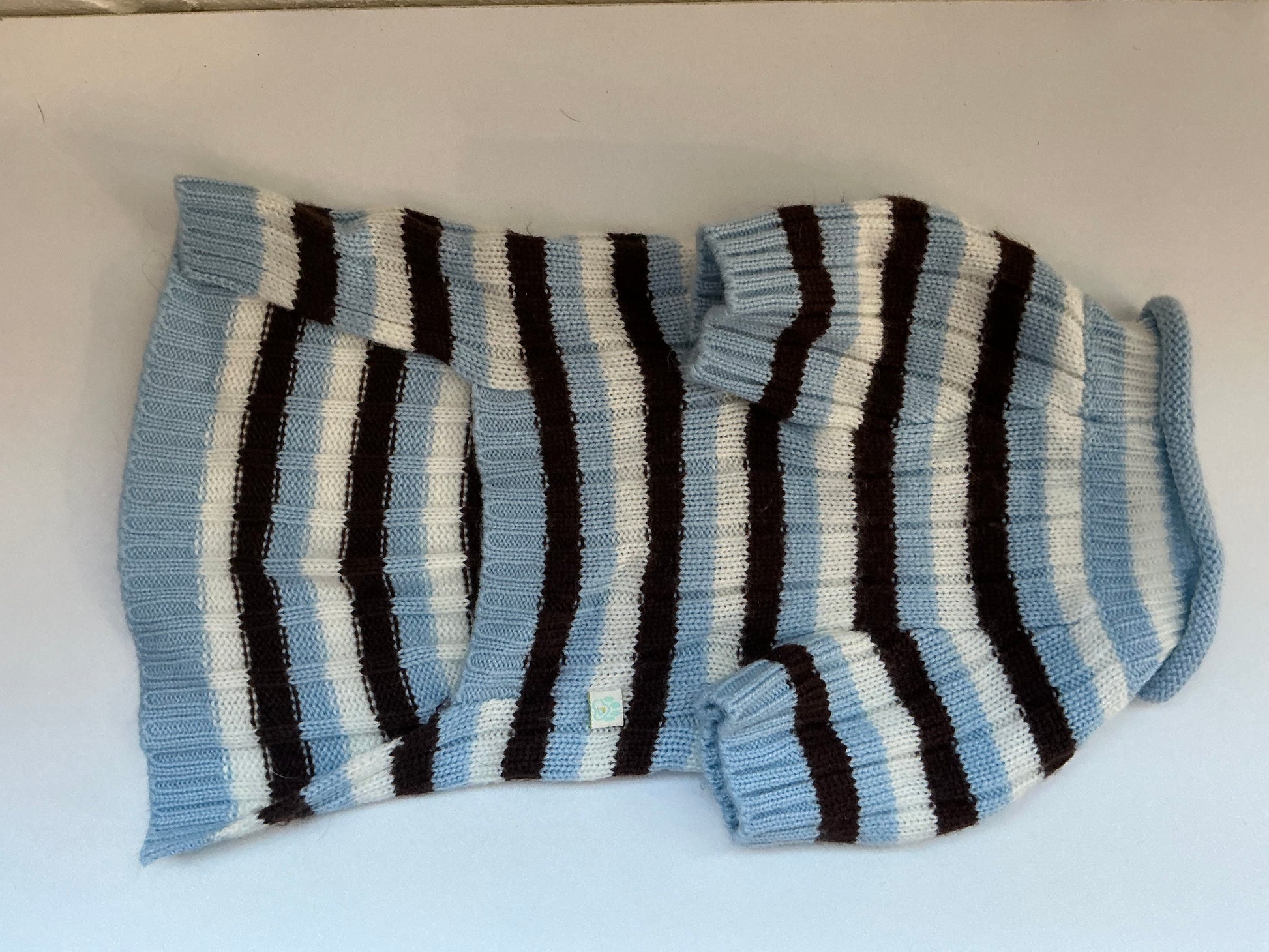 Puppy PAWer Blue, White, and Brown Striped Knit Dog Sweater