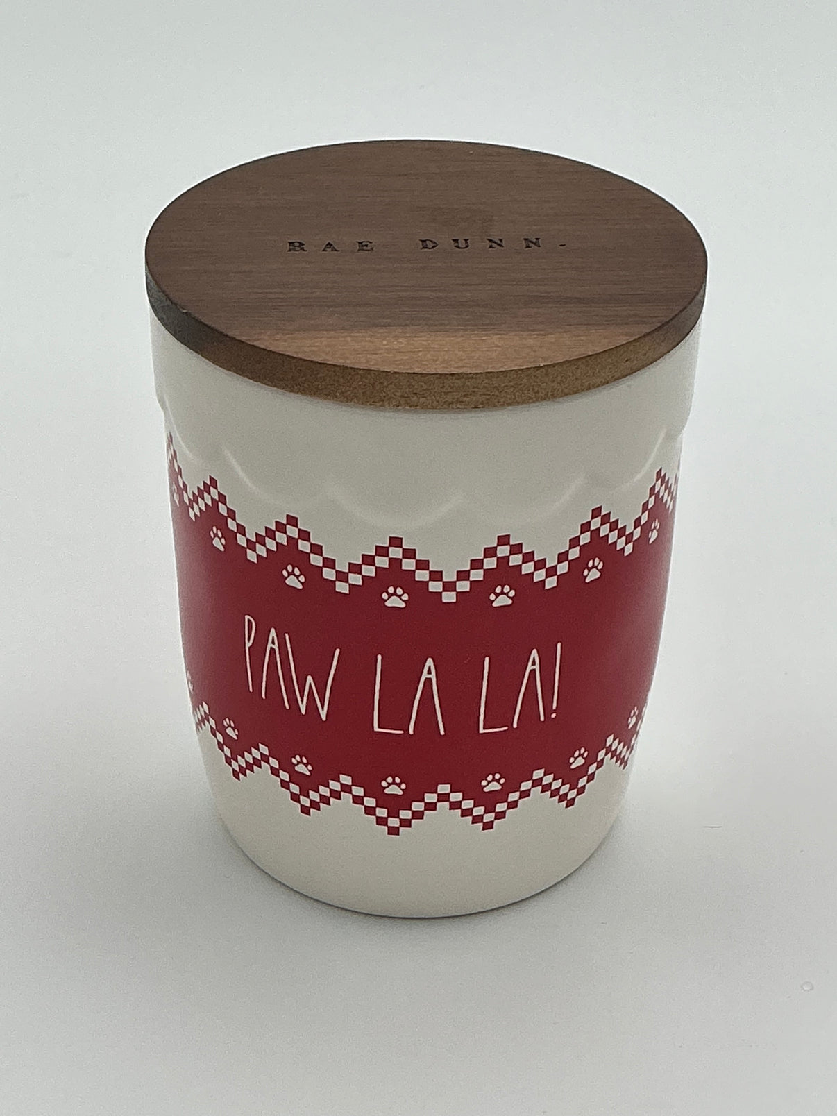 •🐾 Festive Design: Features Rae Dunn’s signature lettering with a red and white holiday sweater pattern that reads “PAW LA LA!”