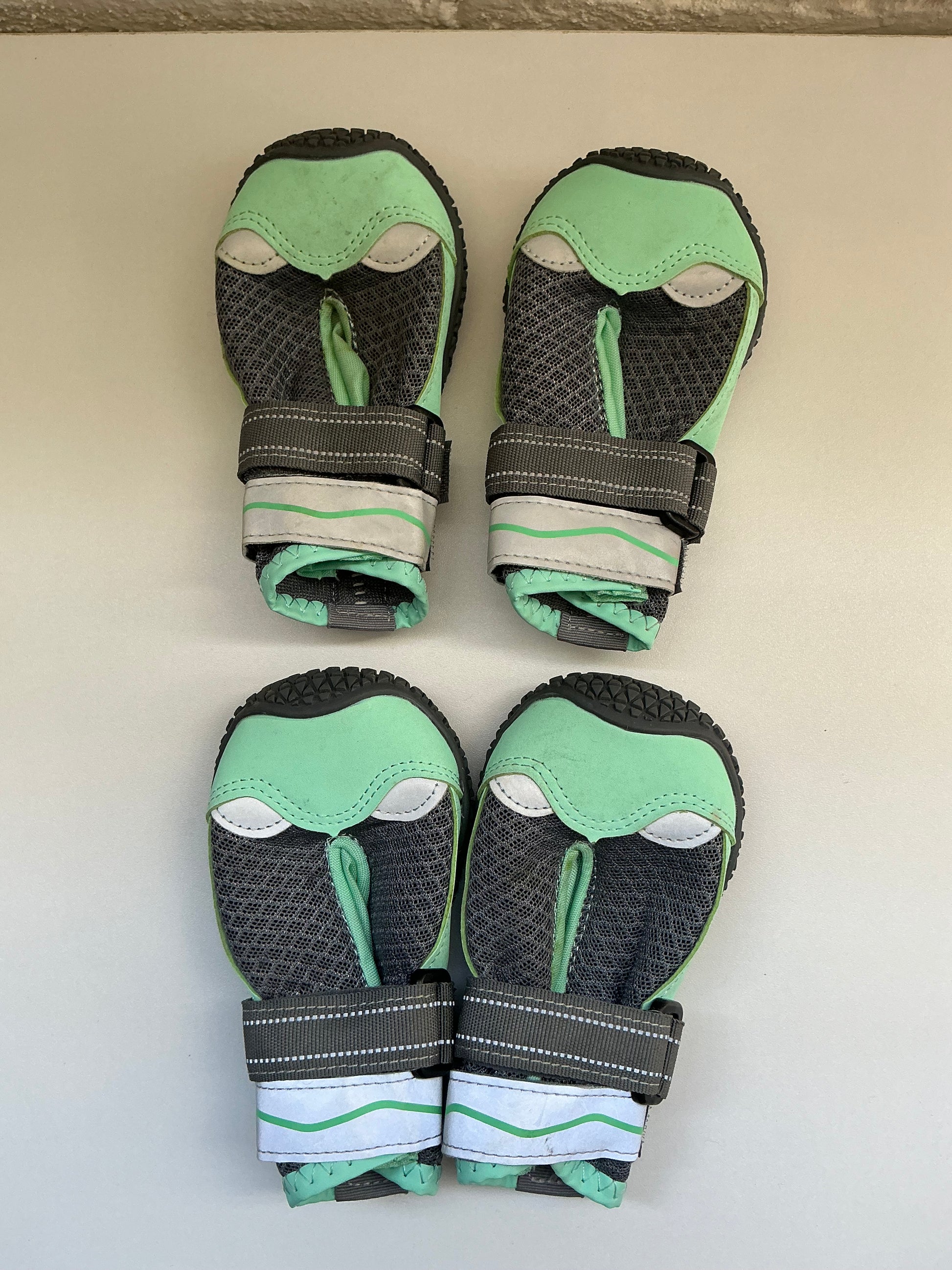 SlowTon Dog Shoes for Large Small Medium Dogs - Breathable Dog Boots for Summer Hot Pavement, Paw Protector for Outdoor Walking Winter Snow, Anti-Slip Rubber Dog Booties for Hardwood Floor (Green, 6)