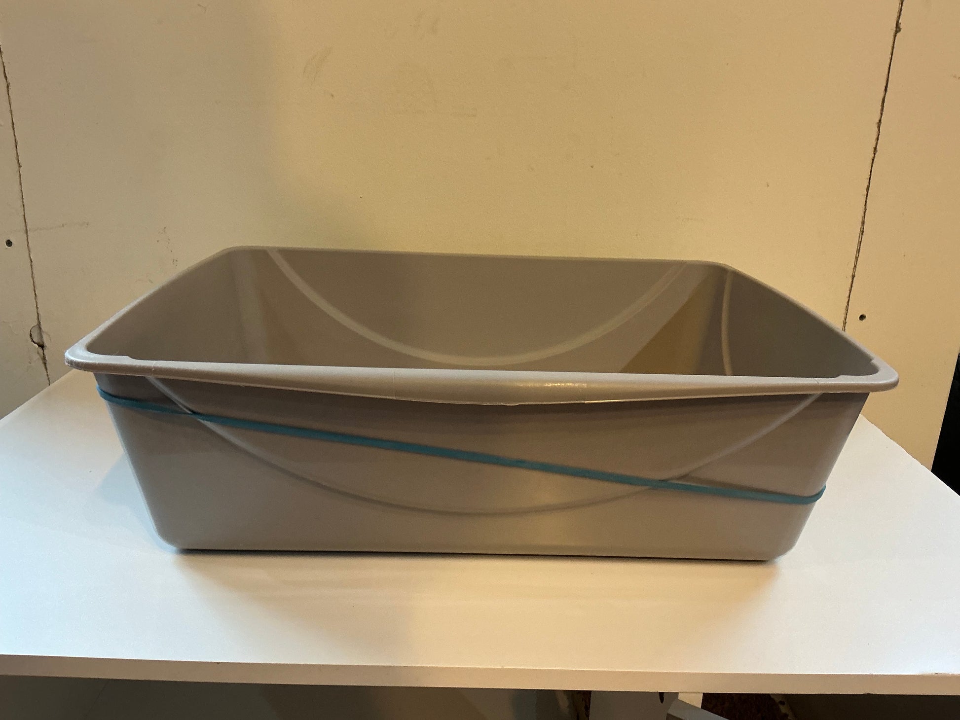 White Wooden Hidden Litter Box Cabinet with Scratcher and Grey Doors