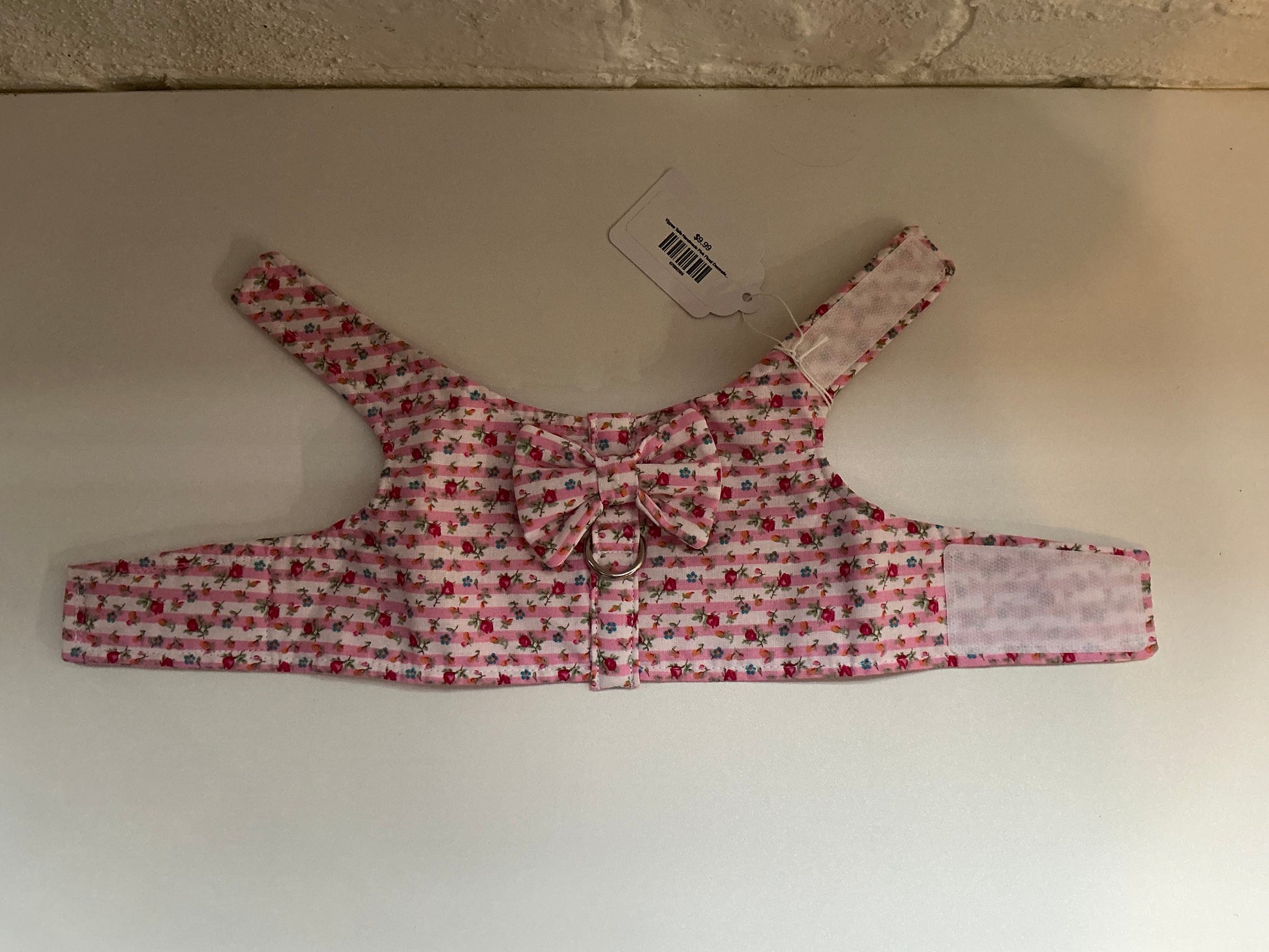 Yippee Tails Handmade Pink Floral Decorative Harness Vest with Bow Size Small